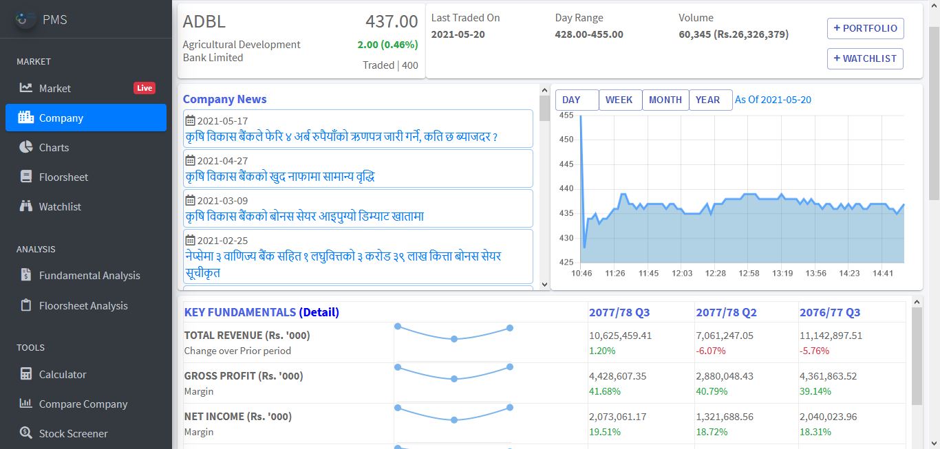 Get any stock details including all factor like News, Financial, Technical Indicator, Dividends, AGM and much more