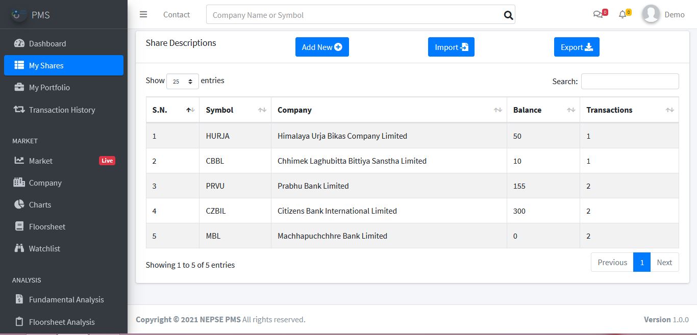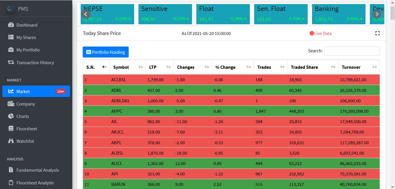 You can get live stock market INDEX and subindices with change percentage including live price of all traded stocks.